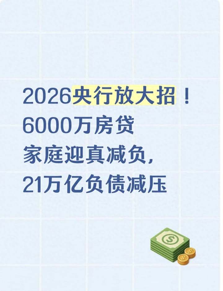 2026年开年,央行送出“史上最强减负大礼包”:公积金利率自动降、商贷跟着LPR调、还款方式能灵活选、提前还贷免违约金,甚至交易税费和首付比例也同步优化。这波新规不是“画大饼”,而是让每个房贷家庭都能拿到真金白银的实惠。今天用最实在的大白话,结合2026年最新政策细则、真实案例和城市差异,把所有福利讲透——算清你家能省多少钱,教你怎么操作享最大优惠,避开容易踩的坑,让21万亿房贷真正“卸担子”。